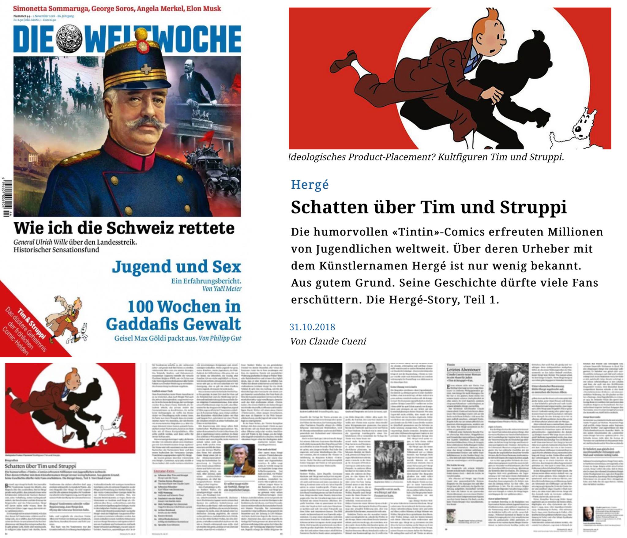 2) In die Weltwoche staat een 2-tal artikelen met als onderwerp Schaduw over Kuifje en Bobby (door Claude Cueni) en het boek van van dezelfde auteur.