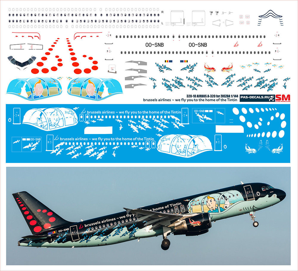 1/144 PAS-DECALS decals for AIRBUS A320 BRUSSELS AIRLINES TinTin