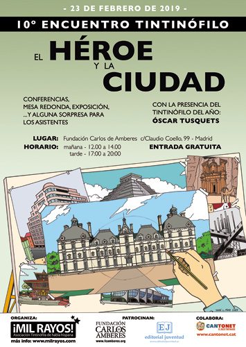 Het evenement op vrijdagavond zal plaatsvinden in de Fundacíon Carlos Amberes in Madrid – en als ik me niet vergis is daar dan op zaterdag 23 februari de 10de bijeenkomst van de Kuifje-club Mil Rayos! Er is kortom wat te doen in Madrid dit weekend!