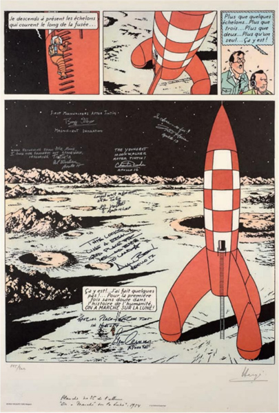 De maanavonturen van Kuifje staan dit jaar in de schijnwerpers omdat het dit jaar vijftig jaar gelden is dat Neil Armstrong voet zette op de maan – het zal niemand ontgaan zijn. Het is ook te merken aan de kavels die morgen geveild worden bij Artcurial in Parijs.