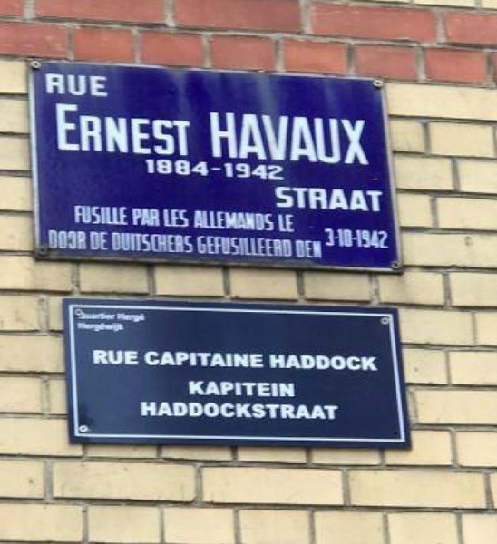 Het beeld staat dus op het Theuxplein in Brussel, in de buurt waar Hergé werd geboren en opgroeide. Een ander initiatief van de deelgemeente is om deze wijk om te dopen tot ‘Hergéwijk’, en alternatieve straatnaambordjes op te hangen. Het Theuxplein heet nu ook Hergéplein.