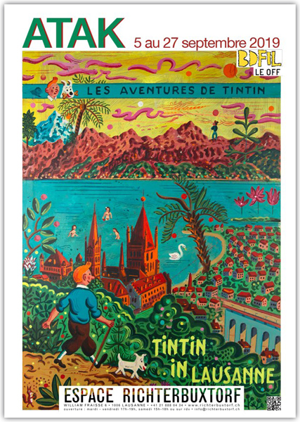 Nog meer auteursrecht-nieuws en juridische dreigementen… In een tentoonstelling aangesloten bij het stripfestival BDFil in Lausanne, wilde de galerie ‘Espace Richterbuxtorf’ het werk van Atak (ofwel Georg Barber) laten zien. Atak maakt onder andere ‘hommages’ aan Hergé: geschilderde pagina’s, vaak met Kuifje in de hoofdrol, soms bestaande uit nageschilderde plaatjes uit de albums.
