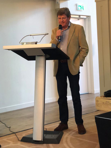 Na een amusante terugblik op Duizend Bommen door hoofdredacteur Kees Langerak was het tijd om Ton Mackaaij uitgebreid in de schijnwerpers te zetten. Ton is 18 jaar als PR- & Eventmanager actief geweest in het bestuur, velen van u kennen hem van de beurzen en natuurlijk van de Ledendagen. Voor Ton is het na al die tijd welletjes. Met een speech en een prachtige prent gemaakt door Steven Gielen namen we afscheid van hem, met een traan en een lach. Dat laatste omdat Ton gelukkig wel op ad-hoc basis beschikbaar blijft voor specifieke klussen.