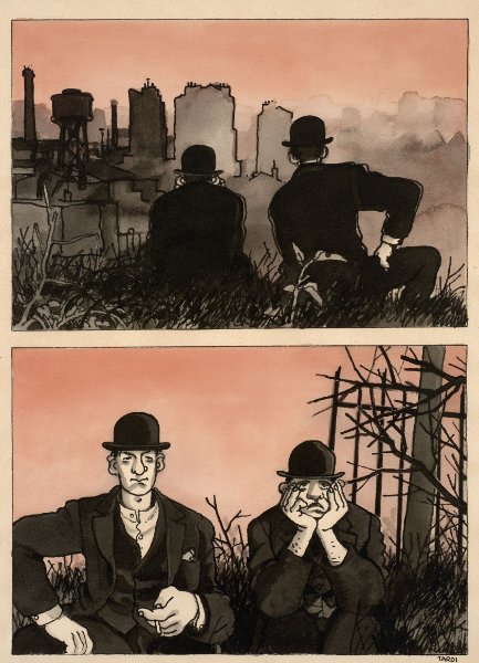 Op 14 januari trok de verkoop van de schets voor de Blauwe Lotus natuurlijk alle aandacht, maar op diezelfde dag werd bij hetzelfde veilinghuis nog een Kuifje geveild. Het gaat om deze tekening van Jacques Tardi (bekend van zijn strips over Isabelle Avondrood en over de Eerste Wereldoorlog).