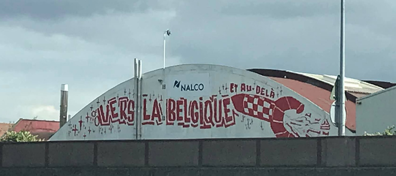 Kris Minne fietste door Noord-Frankrijk en kwam de muurschildering tegen in Wasquehal (Frankrijk). Vanaf de Quai des Alliés maakte hij onderstaande foto.
