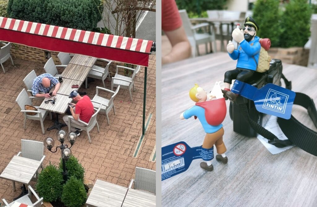 Ondertussen houden we contact met de andere deelnemers aan dit uitje van het Hergé Genootschap, Ton Mackaaij die met zijn bus op eigen houtje onderweg is en de leden Leo en zijn dochter Jessy die een eigen trip en eigen overnachtingen gepland hebben. Wel zullen wij vanavond met zijn zevenen eten en morgen ook samen Cheverny bezoeken. Erg jammer dat er te voren zes andere deelnemers moesten afhaken, door ziekte en door drukke werkzaamheden.
