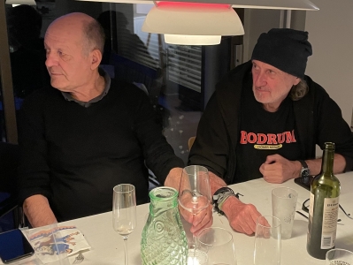 Tijdens de maaltijd bespreken we de nog lopende projecten, die van de scenario-commissie en de productie waar Jan-Joost nog mee bezig is. Ik vertel van de gadget voor de ledendag van 1 juni, die intussen klaar is en die over een paar dagen genummerd gaat worden. Als ook alle herinneringskaarten geschreven en verdeeld zijn, is het al tijd voor het nagerecht.