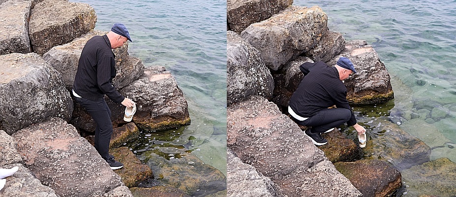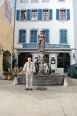 Uiteindelijk komt Ton het dichtste bij het water, als hij aanbiedt mijn schoenen schoon te maken, nadat ik vol in de Zwitserse hondenpoep ben gaan staan.