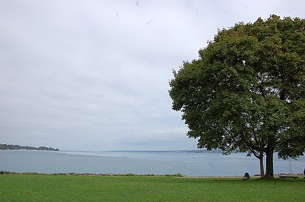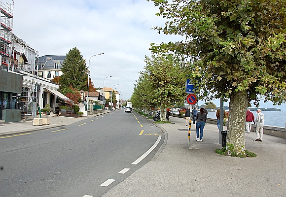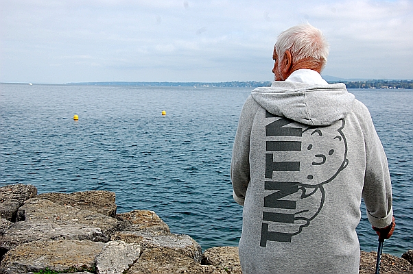 Nyon is een schilderachtige plaats; ik begrijp wel dat Hergé deze omgeving in zijn verhaal heeft opgenomen. We lopen langs het meer, net als Kuifje en de kapitein op blz. 28, waar een brandende sigaret uit een diplomatenauto gegooid wordt. Wij lopen dezelfde kant op, maar dan aan de overkant.