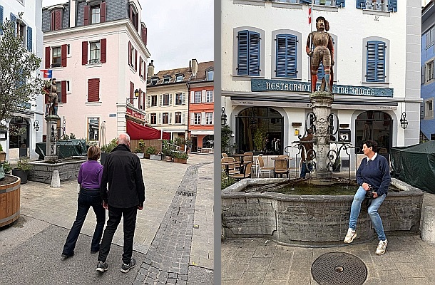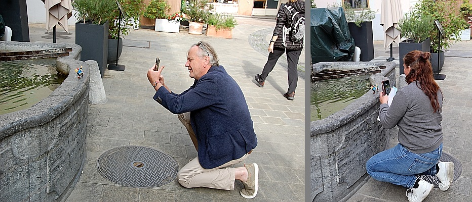 Bij de fontein waar Kuifje en Haddock op blz. 29 zo achteloos aan voorbij liepen, houden wij uitgebreid halt voor een fotosessie.