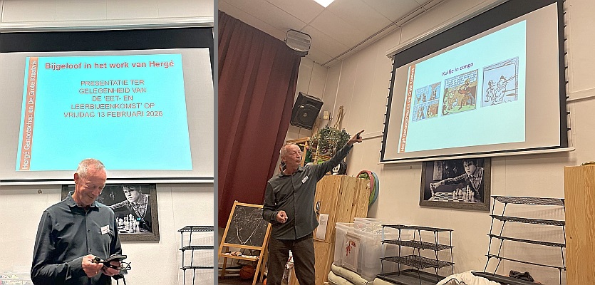 Na Renold kwam de lezing van Peter-Jan die zich verdiept had in de rol die het bijgeloof speelde in het leven van Hergé. Het was een interessant verhaal, PJ belichtte cruciale momenten en situaties uit Hergés leven en zijn contacten.