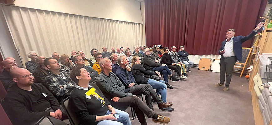 Ook had hij naambordjes geregeld, omdat het prettig is te weten wie je voor je hebt, zeker op een avond als deze met een opkomst van 40 mensen!