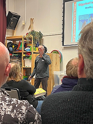Na de soep was het tijd voor het eerste deel van het verhaal van Jan Aarnout. Na een inleiding werd duidelijk dat er voor oplettende lezertjes toch wel heel veel geloof en bijgeloof in de albums te vinden is. Dat leidde tot een flink aantal dia’s.